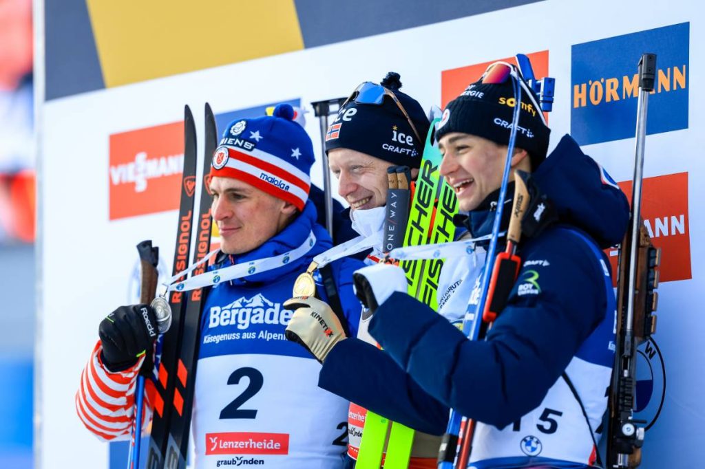 Pourtant parti quinzième avec 1 minute 11 secondes de retard sur Johannes Boe, Éric Perrot est remonté jusqu’à la troisième place grâce une prestation très solide. Presque parfait sur le pas de tir avec une seule erreur (deuxième tir couché), le Tricolore était en grande forme sur les skis avec le meilleur temps à la clé. Il a également réalisé la meilleure poursuite du jour, 30 secondes devant Sturla Holm Laegreid. Le numéro un mondial, qu’il a réussi à distancer dans le dernier tour pour sécuriser la dernière marche du podium.