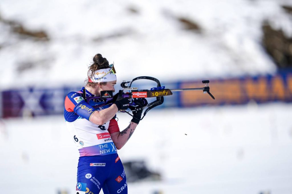 Parfaite sur ses deux premiers tirs couché, Lou Jeanmonnot a vu le podium s’envoler à la suite d’une erreur sur chacun de ses passages au tir debout. “Techniquement, j’ai plus de regrets sur la première cible que je rate. Dans le sens où je la rate parce que j’entends Justine (Braisaz-Bouchet) qui rate la sienne. C’est une erreur due au fait que j’écoutais un peu ce qui se passait à côté et que je n’étais pas vraiment dans mon tir. Alors que la dernière, je la rate parce que je me décide à prendre un peu le parti pris d’essayer d’accélérer, en tout cas de les engager un peu plus. J’ai fait ce choix-là et ça ne passe pas. Donc j’ai peu de regrets, alors que la première c’est une erreur d’inattention et plus regrettable.”