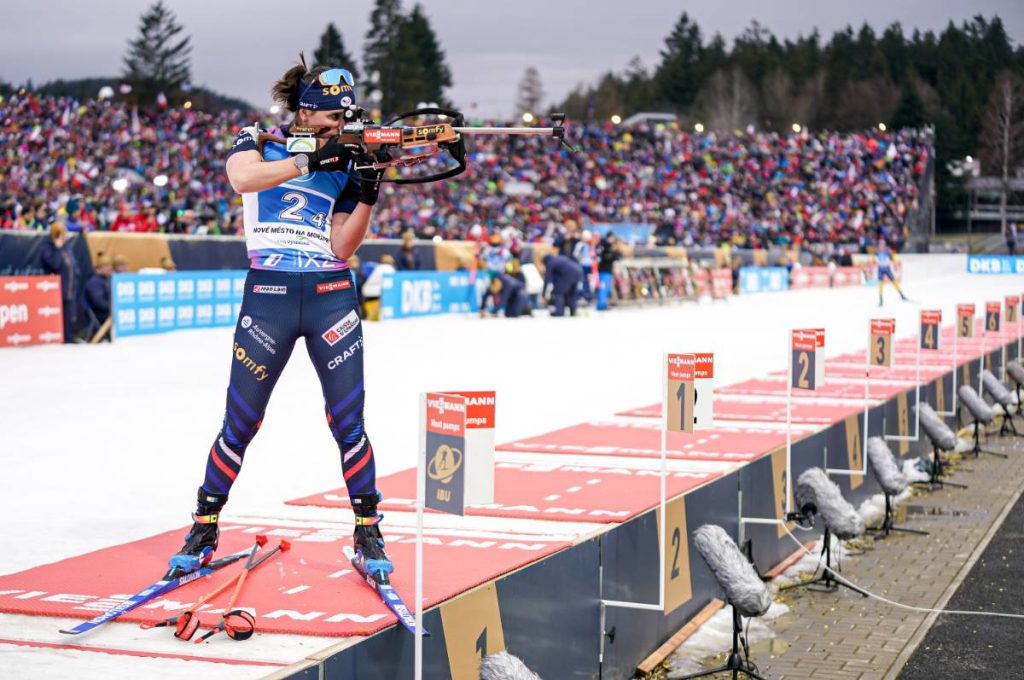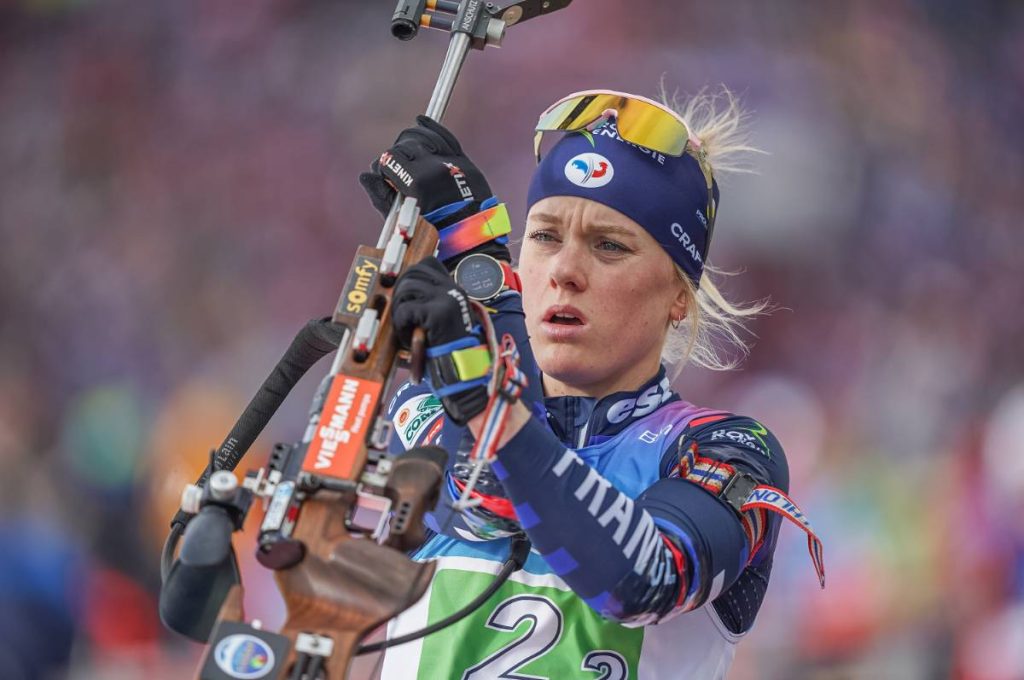 Julia Simon était le dernier étage de la fusée bleue dans ce 4 x 6 km. Faisant jeu égal avec la Elvira Oeberg sur les skis, le titre se jouera derrière la carabine. Un premier tir qui se fera sans accroc pour la Savoyarde, malgré une balle joker utilisée. L’écart se stabilise à une petite vingtaine de secondes, à l’orée du dernier passage face aux cibles. Un tir pour rentrer dans l’histoire du biathlon français pour Julia Simon.