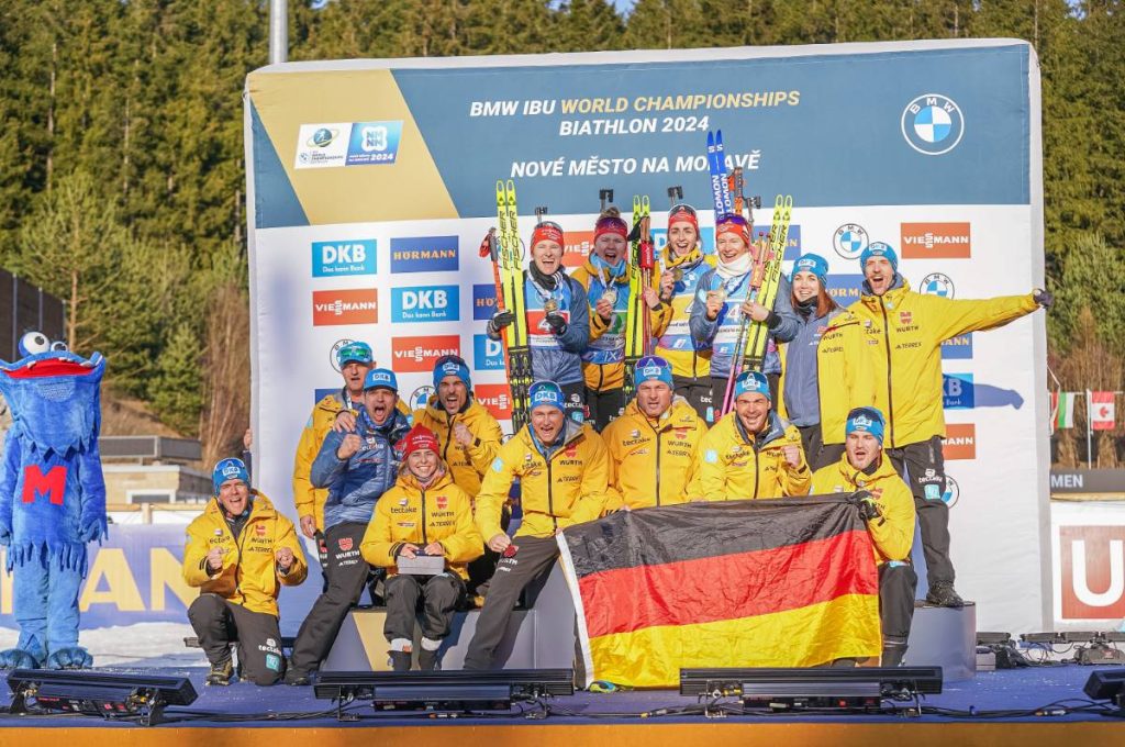 IIl aura fallu attendre le tout dernier relais pour que l’Allemagne se pare de bronze. Pas gâtées par leur glisse aujourd’hui, Janina Hettich-Walz, Selina Grotian, Vanessa Voigt et Sophia Schneider redescendent d’une place par rapport à l’an dernier. Deuxième meilleure équipe derrière la carabine (0+9) après la Pologne (0+3), les biathlètes d’outre-Rhin remportent une première médaille collective dans ces Mondiaux côté allemand.