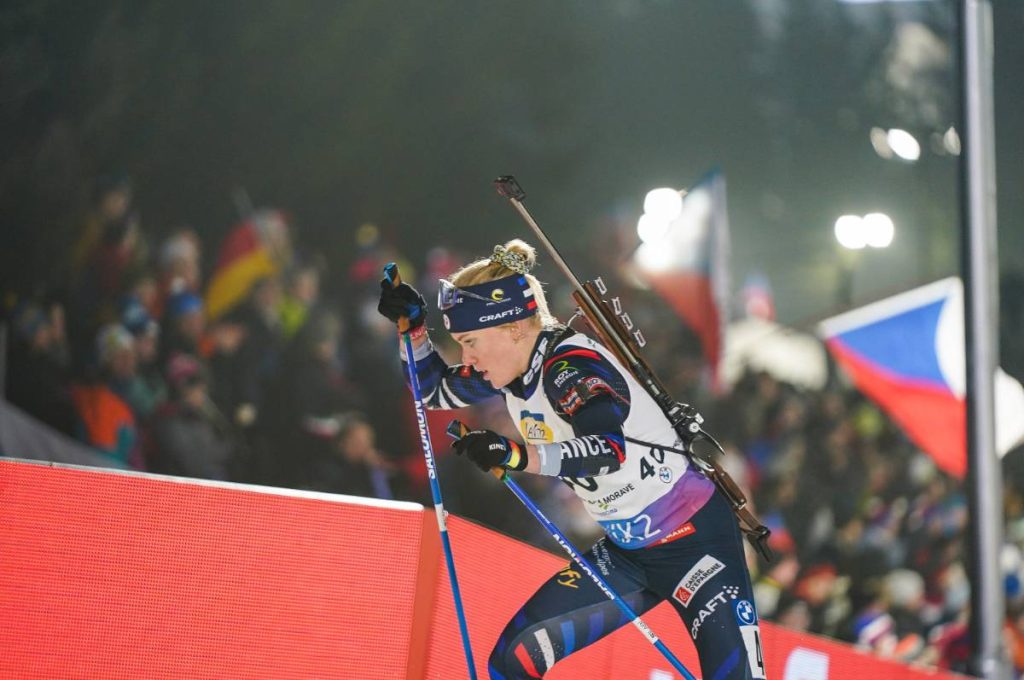 Quatrième à 8 secondes du podium à l’issue du second tir, Sophie Chauveau n’est pas parvenue à reprendre suffisamment de temps sur sa compatriote Lou Jeanmonnot dans le dernier tour. Avec un 9/10 au tir, elle passe finalement à 4 secondes de la première médaille mondiale de sa carrière.“Forcément il y a un peu de frustration, expliquait-elle au micro de la chaîne l’Équipe. Je me suis battue tout le long du dernier tour. Franchement, ça a été très très dur. Pendant tout le tour, quand je remontais un petit peu on me disait que j’étais quatrième à quatre secondes, puis deux secondes. Contre Lou (Jeanmonnot), dans un finish comme ça c’est impossible. Déjà l’été à l’entraînement elle est imbattable, alors là c’était quasiment impossible.”