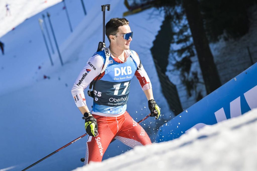 L’Allemand Benedikt Doll remonte la pente après un relais mixte et un sprint ratés. Auteur de la plus belle remontée sur la poursuite (en nombre de places gagnées), Benedikt Doll continue sur sa lancée en allant chercher la cinquième place du jour, à la faveur d’un 19/20. La sixième place revient au jeune Suisse Niklas Hartweg, leader U25, lui aussi à 19/20.