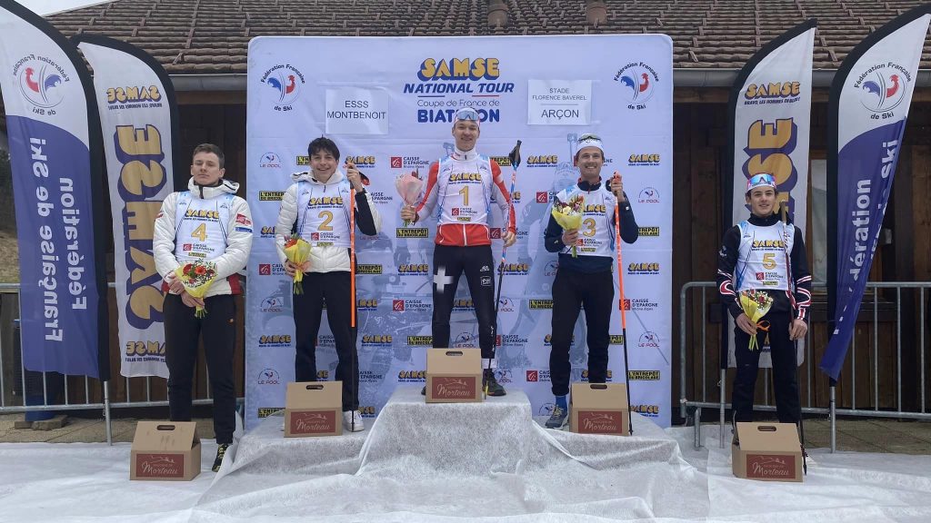 Chez les hommes, Nathanaël Peaquin, U22, a dominé les débats grâce à un tir parfait. Le biathlète de la Féclaz l’emporte pour 21.7 secondes devant Antonin Delsol (U19), auteur de deux erreurs. À 45.8 secondes, Paul Fontaine, premier senior, prend la troisième place à 45.8 secondes de la victoire (pénalisé par deux fautes). Ian Martinet (U22), Camille Grataloup Manissolle (U19) et Esteban Javaux (U22) ferment le top 6.
