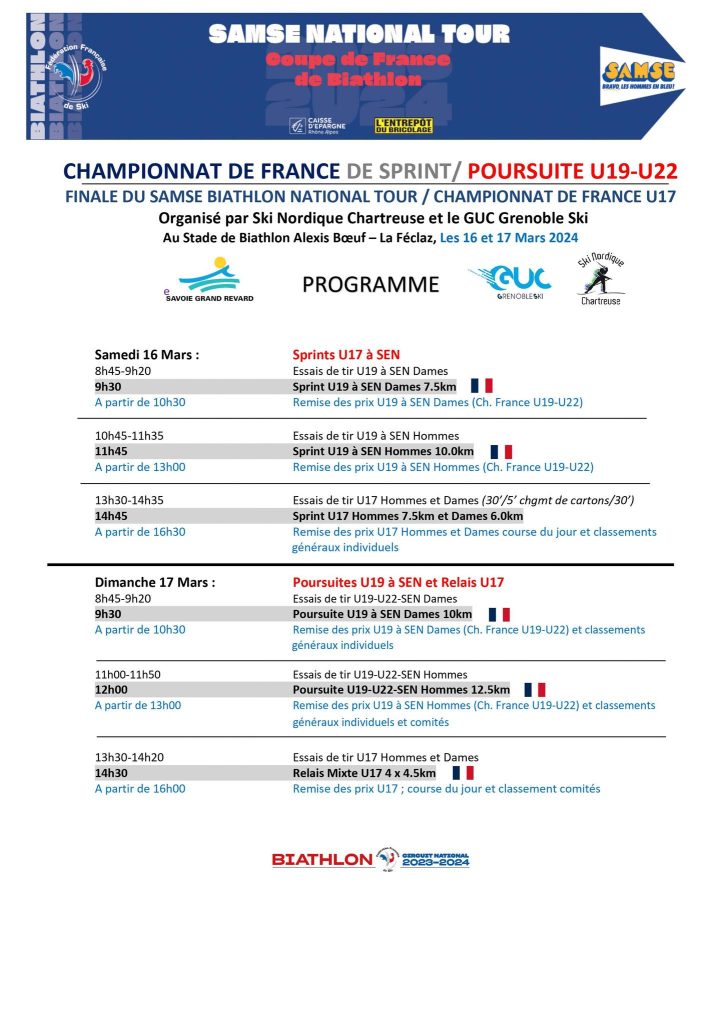 - 12 h 00 : poursuite U19 à séniors hommes (Championnat de France U19 et U22)