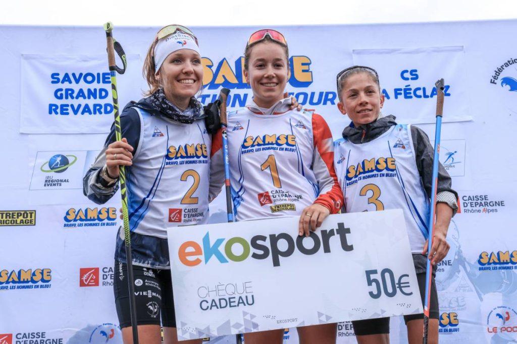 À 29.4 secondes, Gilonne Guigonnat se pare de bronze sur le sprint. Nouvelle membre de l’équipe A cet été, la native d’Ambilly prend une très belle troisième place grâce à un solide 9/10 sur le pas de tir. Elle a su maintenir derrière elle le temps Julia Simon, quatrième à 9.1 secondes de la médaille avec trois erreurs. Le top 5 senior est complété par Paula Botet (9/10), septième au scratch. Déception du côté de Sophie Chauveau, seulement seizième toutes catégories confondues. À noter que Chloé Chevalier et Caroline Colombo sont forfaits pour ce week-end à la Félcaz.