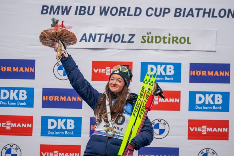 Cette victoire, la cinquième cette saison, vient récompenser la belle régularité de Lou Jeanmonnot. La Française partira en quête d’une sixième lors de la poursuite programmée samedi. Un double objectif pour elle : outre la gagne, il s’agira d’engranger de précieux points en vue du gros globe de cristal qu’elle ambitionne et pour l’instant dans les bras de l’Allemande Franziska Preuss. La leader actuelle de la coupe du monde continue sur sa lancée : elle monte à Antholz sur la troisième marche et s’offre son neuvième podium