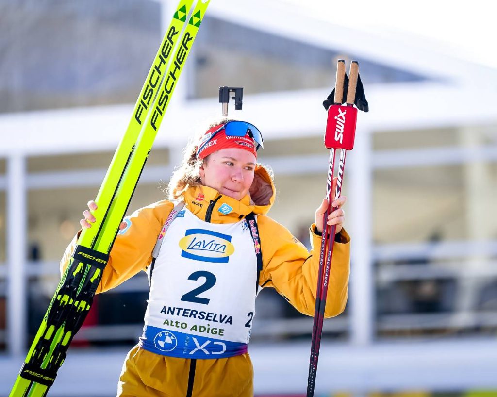 Selina Grotian, qui devait conclure le relais allemand féminin en l’absence de Franziska Preuss, laissée au repos, est remplacée par Johanna Puff.