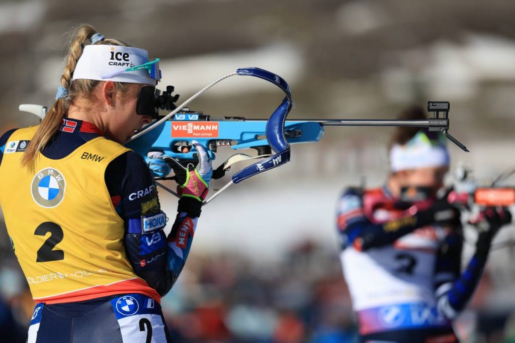 Seulement 17e du sprint, Ingrid Tandrevold voit revenir à 7 points derrière elle Lisa Vittozzi au classement général à deux courses de la fin. Et la Norvégienne partira au-delà de la minute de retard sur la poursuite. Le dossard jaune ne tient qu’à un fil sur ses épaules.