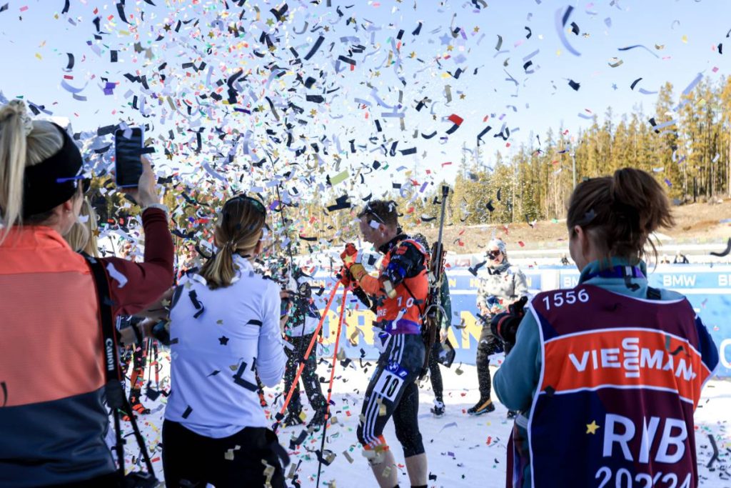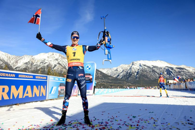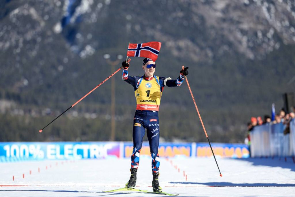 Intouchable et presque parfait face aux cibles (19/20), Johannes Boe conclut cette saison 2023/2024 par une magnifique victoire, sa onzième de l’hiver ! Sur un nuage ce week-end à Canmore avec trois victoires en autant de course, le Norvégien se permet même de chiper le globe de la mass-start au nez et à la barbe de son coéquipier Johannes Dale-Skjevdal pour seulement trois petits points ! Johannes Boe termine donc son hiver avec un cinquième gros globe de cristal et rentre un peu plus dans la légende du biathlon.