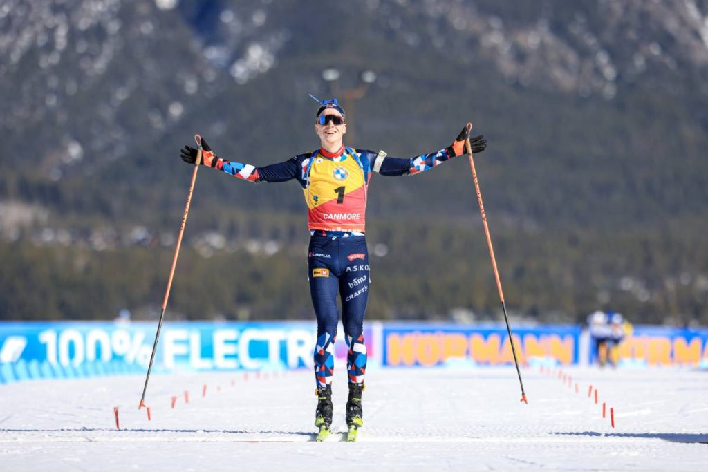 Porteur du dossard jaune en début de saison, Sebastian Samuelsson s’était montré plus discret par la suite puisqu’on ne l’avait plus vu sur le podium depuis le sprint d’Hochfilzen, en décembre dernier. Parti en 6e position, le Suédois réalise une belle opération dès l’issue du premier tir avec un 5/5 qui lui permet de ressortir deuxième. Malgré une erreur sur son premier debout, il reste dans le trio de tête tout au long de la course. En duel pour la deuxième place avec Eric Perrot dans l’ultime tour, il contre l’attaque du Français et fait la différence dans les derniers mètres, au sprint.