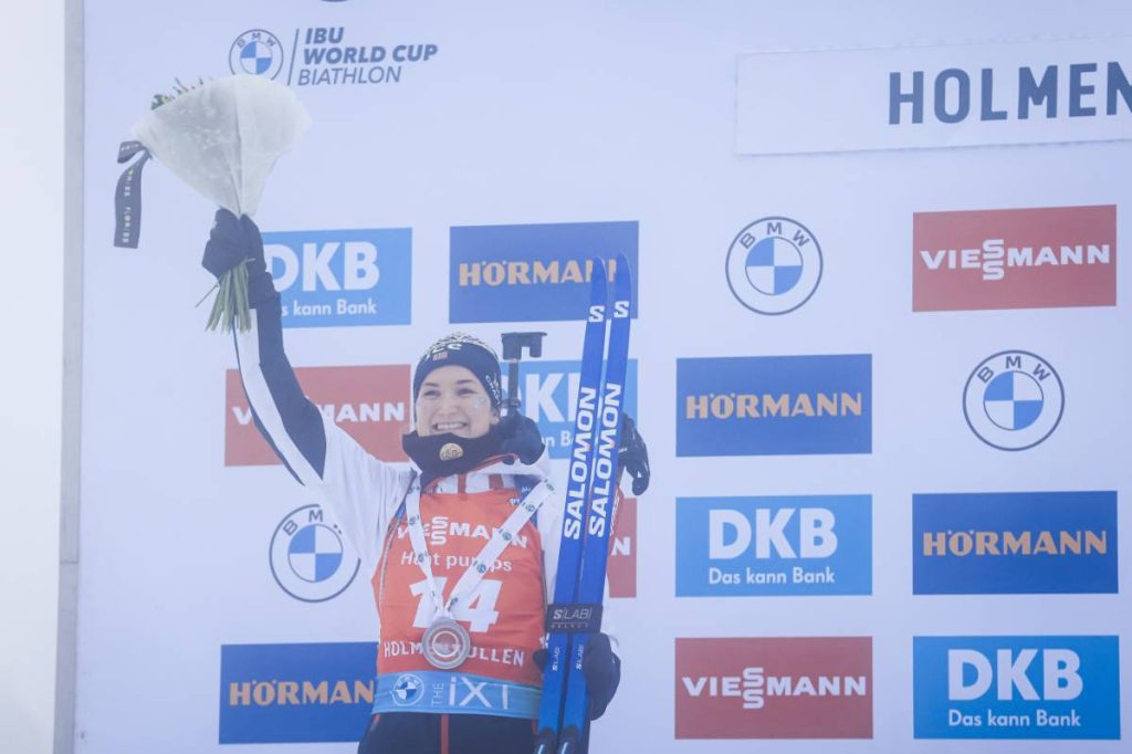 Annonçant sa retraite, à l’issue de cette étape d’Holmenkollen, Marte Olsbu Roeiseland sort par la grande porte. Après un sprint manqué (32ème), la Norvégienne voulait communier une dernière fois avec son public, à la hauteur de son immense carrière. Une seule erreur sur le pas de tir lui aura suffi pour aller chercher le dernier podium de sa carrière. Une dernière récompense pour la numéro 1 mondial en titre, quittant le circuit sur une bonne note.