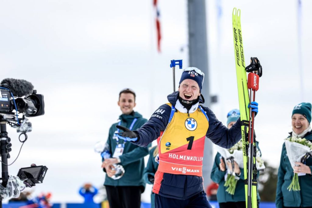 Quentin Fillon Maillet est bien de retour aux affaires ! Absent à Ostersund, le Jurassien décroche son deuxième podium de la saison sur cette poursuite d’Holmenkollen avec un tir parfait. Poursuite une nouvelle fois dominée par un Johannes Boe intouchable. Sturla Holm Laegreid complète le podium. Fabien Claude dans la cérémonie des fleurs.
