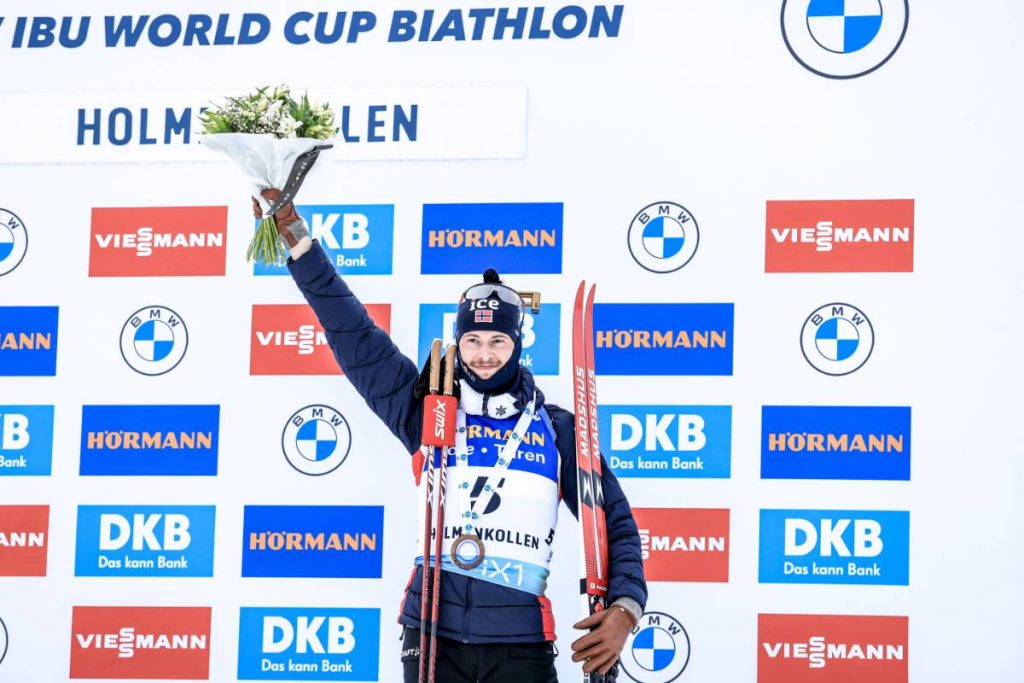Le podium de ce 12,5 km est enfin complété par le Norvégien Sturla Holm Laegreid. Le dauphin de Johannes Boe au classement général, toujours aussi constant au niveau des performances est encore au rendez-vous. Cinquième du 10 km, il retrouve le podium, après avoir lui aussi contracté le Covid à Nove Mesto notamment. Signant un 19/20 derrière la carabine et crédité du septième temps de poursuite du jour, ce podium vient récompenser la régularité tout au long de la saison du natif de Baerum.