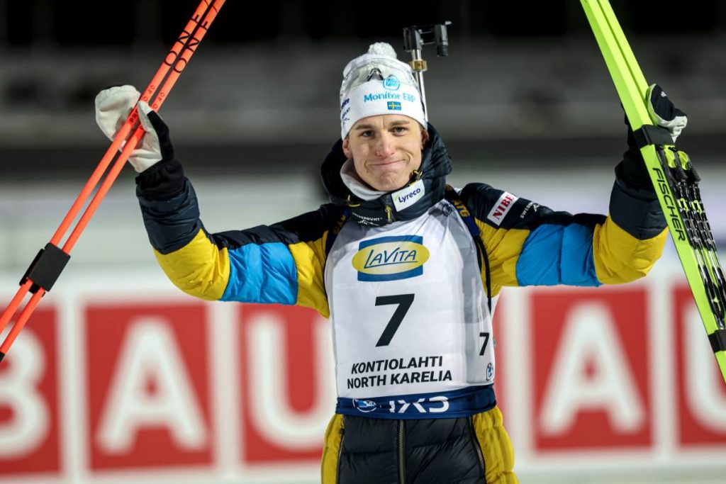 Avec également deux passages par l’anneau de pénalité, le champion olympique de la poursuite Martin Ponsiluoma termine cinquième.