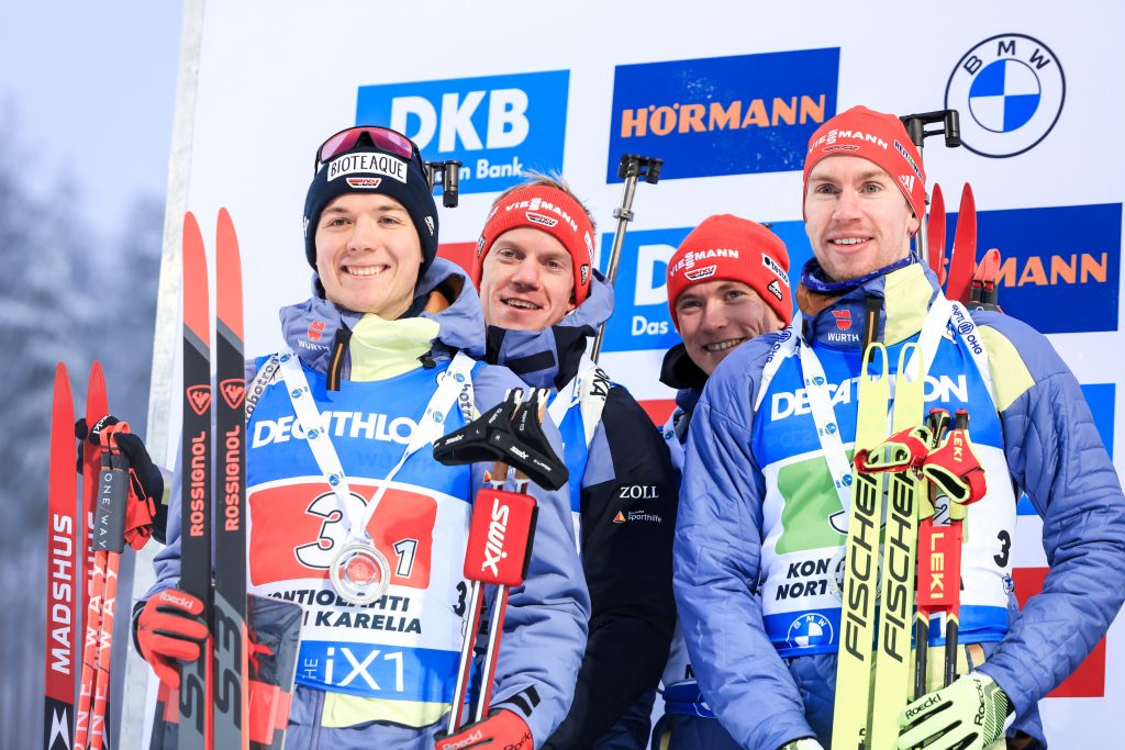 Après avoir échoué au pied du podium lors des deux derniers relais, dont celui des JO, l’Allemagne retrouve enfin le top 3 en relais masculin. Au coude-à-coude avec la Norvège jusqu’au dernier relais, la bande Justus Strelow, Johannes Kuehn, Benedikt Doll et Roman Rees a mené une belle lutte sur ce relais pour décrocher la deuxième place.