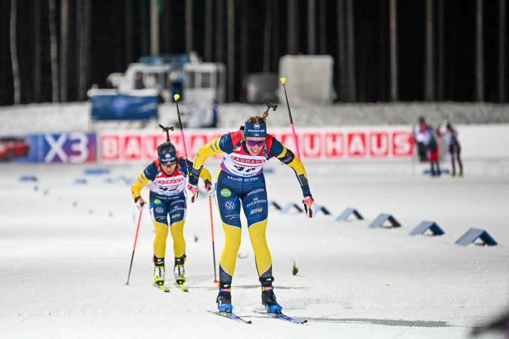 Derrière, la Suède reprend des couleurs. Si les biathlètes masculins ont souffert lors de l’individuel mardi, la dynamique s’est totalement inversée pour leurs homologues féminines, à savoir Ella Halvarsson et Elvira Oeberg. Pour sa troisième course individuelle en coupe du monde, Ella Halvarsson, tout juste 25 ans, a livré une course pleine, simplement émaillée d’une erreur sur son premier tir debout. Partie avec le dossard 4, elle a longtemps espéré à la victoire, grâce au deuxième temps de glisse. La belle surprise de ce début d’hiver termine finalement à la deuxième place, simplement dépassée par Lou Jeanmonnot. Un classement qui lui ouvre de belles perspectives pour la suite de la coupe du monde.