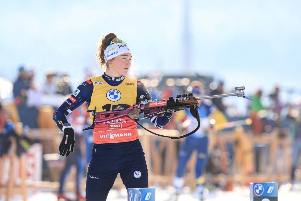 15 février 2024 : La Française est sacrée championne du monde du relais mixte avec Quentin Fillon Maillet. Un premier sacre suivi deux jours plus tard d’un second sur le relais féminin. Elle a ouvert sa quinzaine avec le bronze sur le sprint.