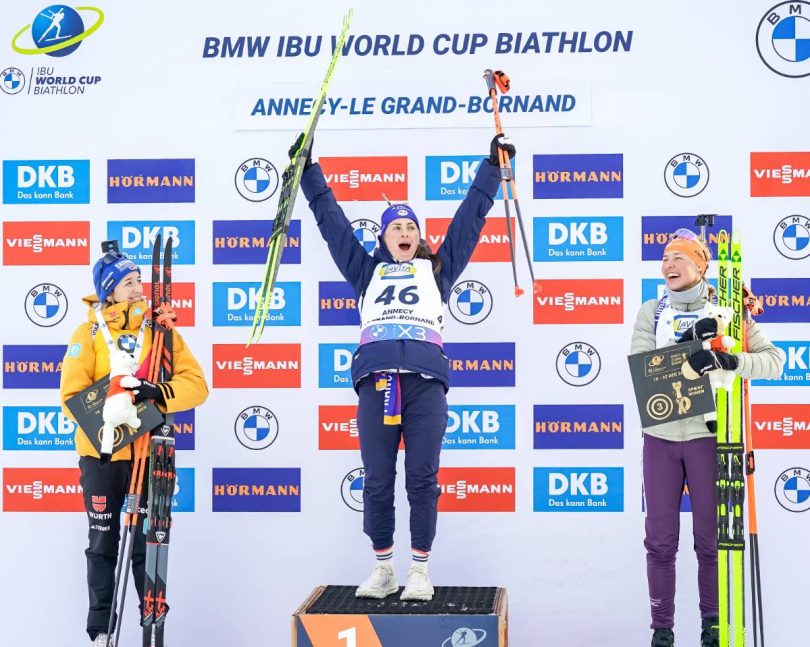 Justine Braisaz-Bouchet s’offre sa première victoire cette saison sur ce sprint du Grand-Bornand. La Savoyarde s’impose avec le même écart que Martin Uldal hier (1,4 sec) face à Franziska Preuss. Tout premier podium en Coupe du Monde pour Anamarija Lampic.