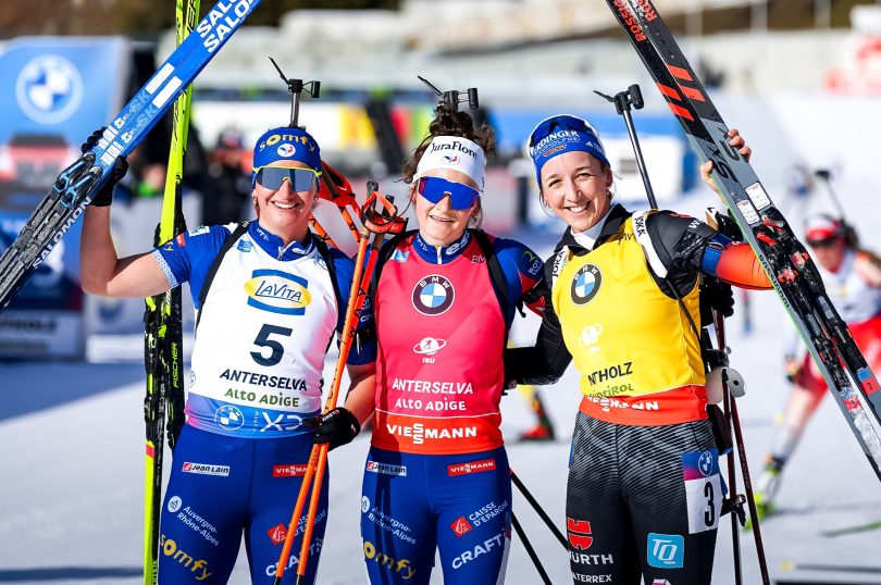 Lou Jeanmonnot (19/20) enchaîne à Antholz avec un nouveau succès sans contestation sur la poursuite. Julia Simon renoue avec le podium avec une fantastique deuxième place devant Franziska Preuss. Quatre françaises dans le Top 5 avec Jeanne Richard quatrième et Océane Michelon, cinquième.
