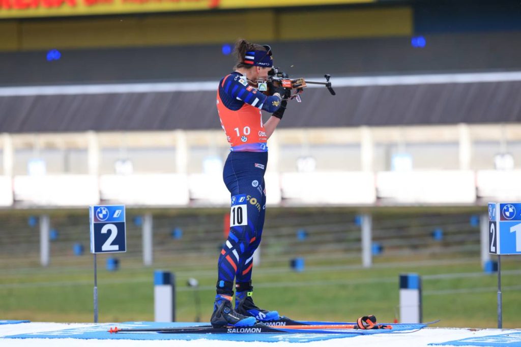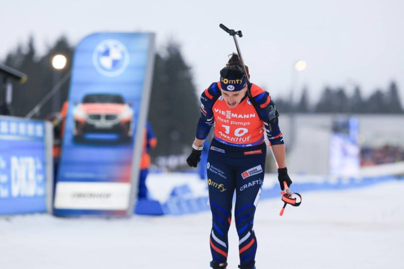 Je sais qu’il y a une ouverture (en entendant les fautes de Justine Braisaz-Bouchet sur le dernier tir), c’est ça que j’aime dans le biathlon, ce challenge, si je vais réussir à le relever ou pas. Ma troisième balle part un peu vite, aujourd’hui je n’ai fait que des erreurs avec trop d’envie. Après cette faute je me suis dit, « une mais pas deux. Une ça peut jouer, deux c’est mort, tu te reprends ». Je me suis reprise, j’ai resserré les cale-pieds et ça fait une belle course avec des tirs comme j’aime, à l’attaque. Aujourd’hui c’est que du positif.”