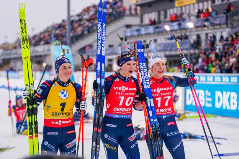 Magnifique doublé de l’équipe de France sur la poursuite féminine d’Oberhof avec le succès de Julia Simon devant Justine Braisaz-Bouchet. Ingrid Tandrevold complète le podium.