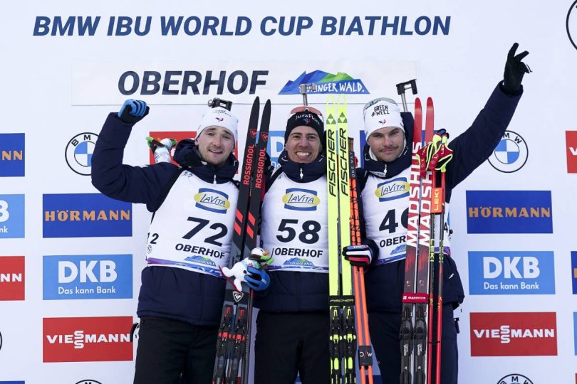 On les avait laissés dans l’ombre d’Oberhof en 2024. On les retrouve en pleine lumière dès la première course allemande, version 2025. Les Français, loin du classement il y a un an, ont ravivé leur flamme pour signer un triplé sur le sprint, près de cinq ans après celui sur la poursuite de Kontiolahti le 14 mars 2020 (1er : Martin Fourcade / 2è : Quentin Fillon-Maillet / 3è : Emilien Jacquelin). Quentin Fillon-Maillet, dossard 58, n’a laissé place à aucune hésitation. Ni sur le pas de tir, auteur d’une magistral 10/10, ni sur les skis (troisième temps du jour). Envolé le début de saison compliqué, marqué par un seul podium individuel sur la mass start de Kontiolahti où il avait fini deuxième ! Sa forme du jour le porte haut, très haut : jusqu’à la première marche du podium. Un classement qu’il n’avait plus connu depuis le 10 mars 2022 lors du sprint d’Otepaa et qui lui permet de relancer totalement sa deuxième partie de saison.