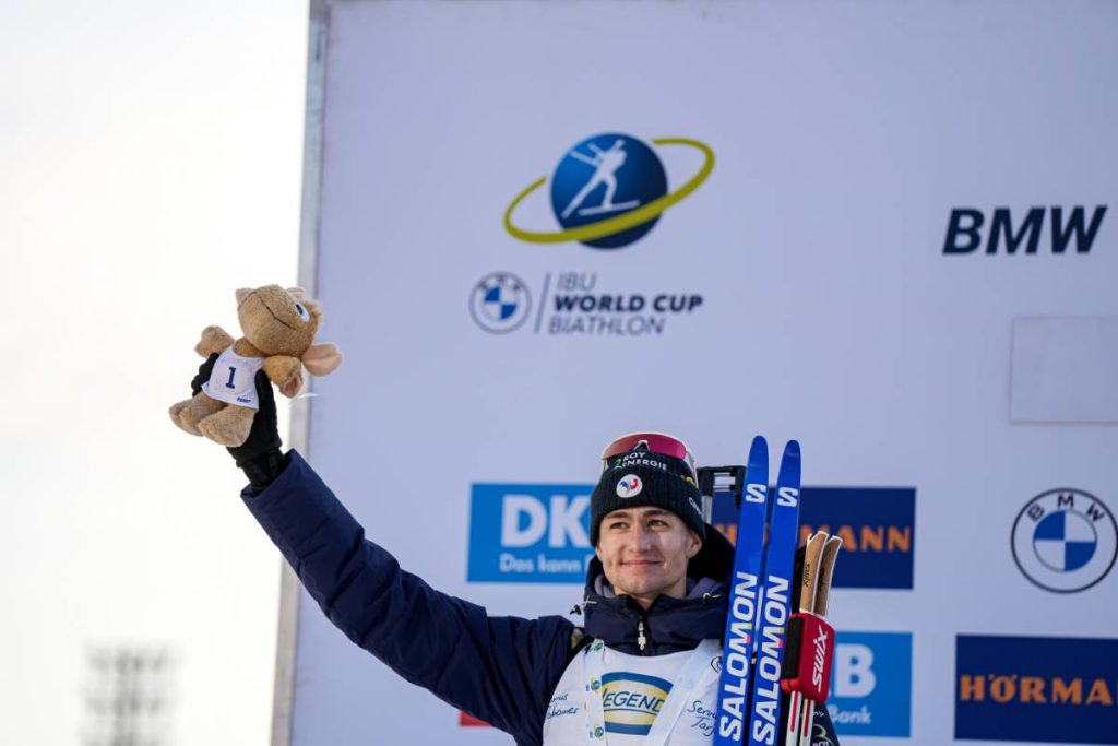 Après son magnifique succès sur l’individuel devant son public, Jakov Fak (20/20) complète la cérémonie des fleurs.