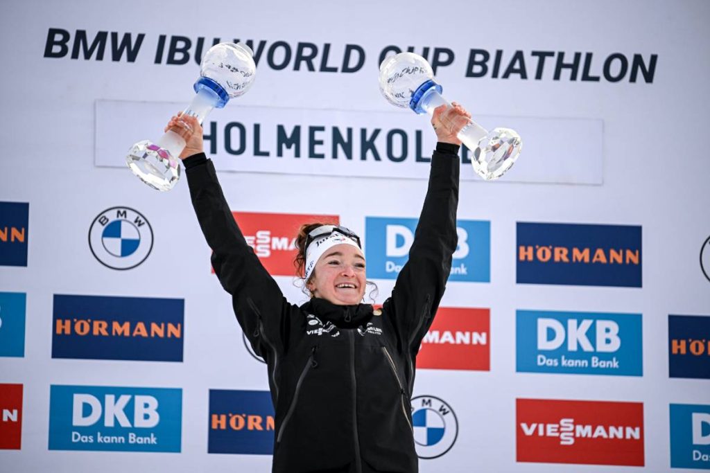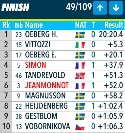 C’est officiel ! Avec un nouveau top six, Lou Jeanmonnot s’assure le gros globe à deux courses de la fin. La victoire revient à Hanna Oeberg qui s’impose pour la troisième fois consécutive de l’hiver sur le format. Elle devance l’Italienne Lisa Vittozzi et sa soeur Elvira. Julia Simon est quatrième.