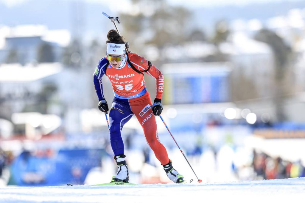 Avec une faute sur chacun des deux premiers tirs, Chloé Chevalier termine deuxième Française en huitième position. Anaïs Chevalier-Bouchet, deuxième temps de ski du jour termine douzième. Seizième place pour Lou Jeanmonnot qui signe le 18 sur 20 derrière la carabine. Troisième temps de ski, Caroline Colombo a commis quatre erreurs face aux cibles et se classe 27e. Course compliquée pour Sophie Chauveau avec six erreurs, dont quatre sur le premier debout, qui prend la 64e place.