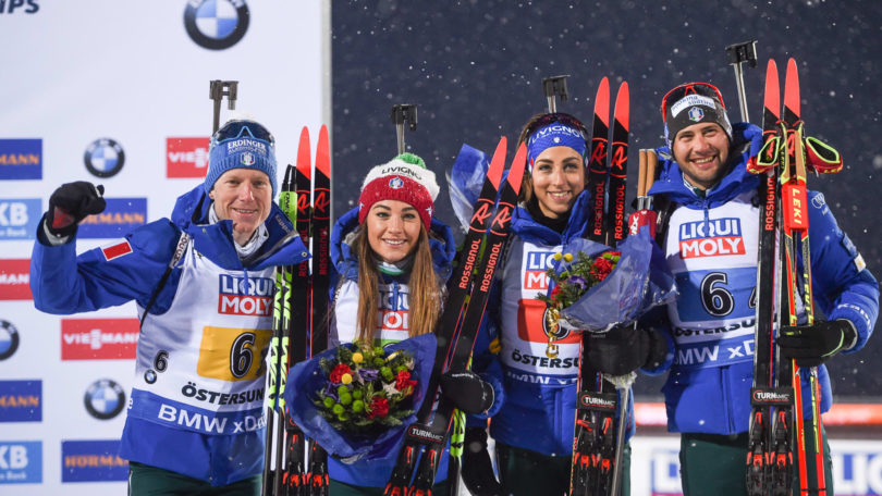 Dominik Windisch a résisté au retour fracassant de Johannes Boe dans le dernier tour pour donner la victoire à l’Italie sur le relais mixte. Déception en revanche pour la France…