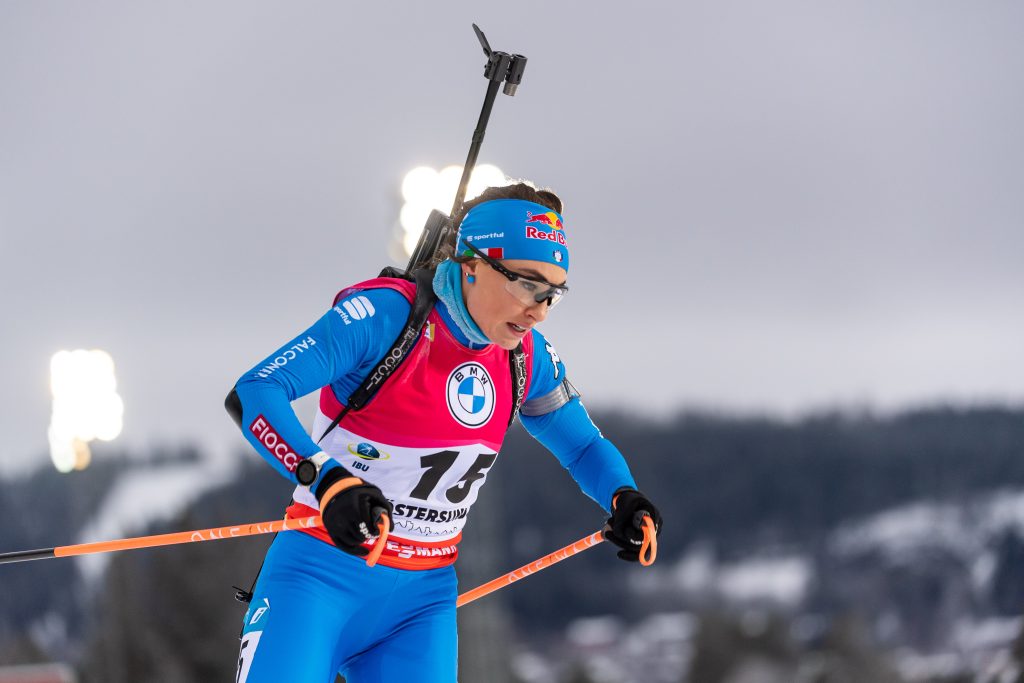 On s’attendait à mieux de la part de Dorothea Wierer, elle aussi porteuse du dossard rouge. Après un premier couché irréprochable, elle signe un premier tir debout mitigé avec deux fautes. L’Italienne, qui pouvait espérer regagner du temps à condition de faire rapidement le plein sur les tirs suivants, a cependant accusé un retard supplémentaire sur le second couché. Un problème technique avec sa carabine lui a en effet fait perdre de précieuses secondes. Elle abandonne tout espoir de bien figurer au classement avec deux fautes supplémentaires sur le dernier debout, et se classe finalement 37e de cet individuel dames.