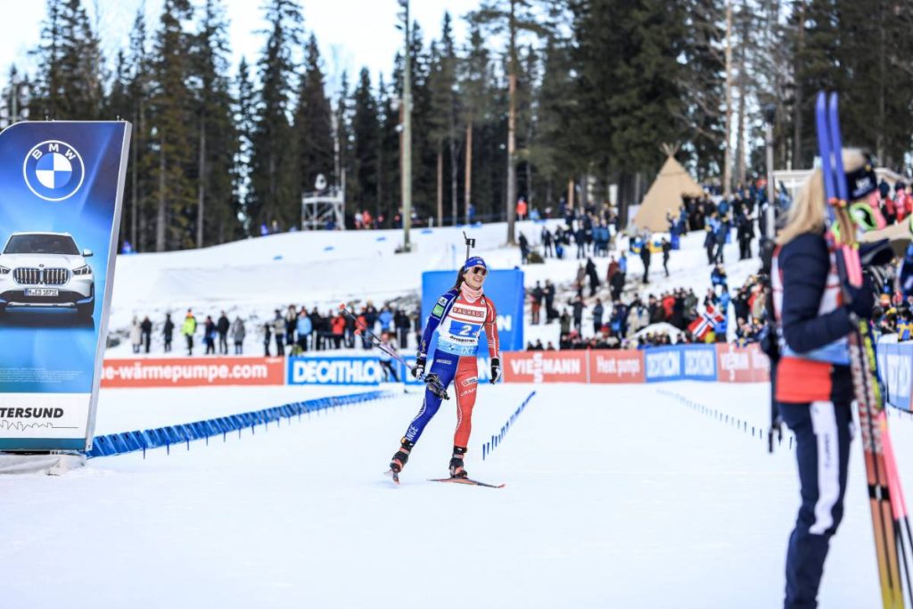 Alors que la Norvège s’envole en tête, Anaïs Chevalier-Bouchet et Denise Herrmann-Wick ont le cristal en tête. Côte à côte sur la piste, tout se jouera sur le dernier tir. Et sur cet exercice, c’est la Française qui sort vainqueure : un 5/5 en 21,9 secondes, qui fait craquer Denise Herrmann-Wick. Avec désormais 15 secondes d’avance, Anaïs Chevalier-Bouchet ne laisse aucun espoir à l’Allemande pour offrir à la France une médaille d’argent synonyme de cristal.