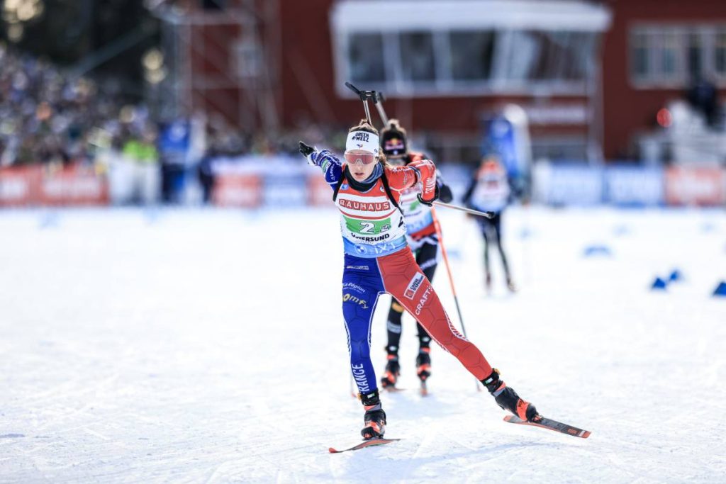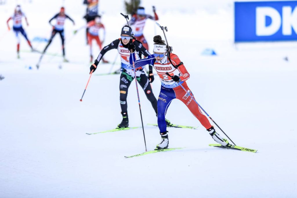 Malgré une pioche sur son tir couché, Lou Jeanmonnot refait son retard sur la piste et se présente à nouveau en tête sur le tir debout. Irréprochable cette fois, la native de Pontarlier s’élance à la poursuite de Rebecca Passler, qu’elle déposera rapidement. La Française transmet le relais en tête, avec une grosse dizaine de secondes d’avance sur ses principales concurrentes.