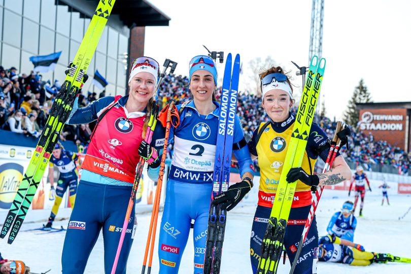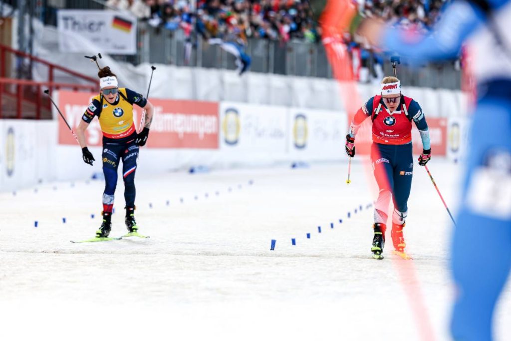 Battue pour deux secondes sur le sprint, Lisa Vittozzi prend sa revanche sur la poursuite dans des conditions très instables sur le pas de tir. Au sprint, Suvi Minkkinen devance d’un boyau Lou Jeanmonnot, finalement troisième. Belle remontée de Justine Braisaz-Bouchet qui échoue au pied du podium, juste devant Océane Michelon.