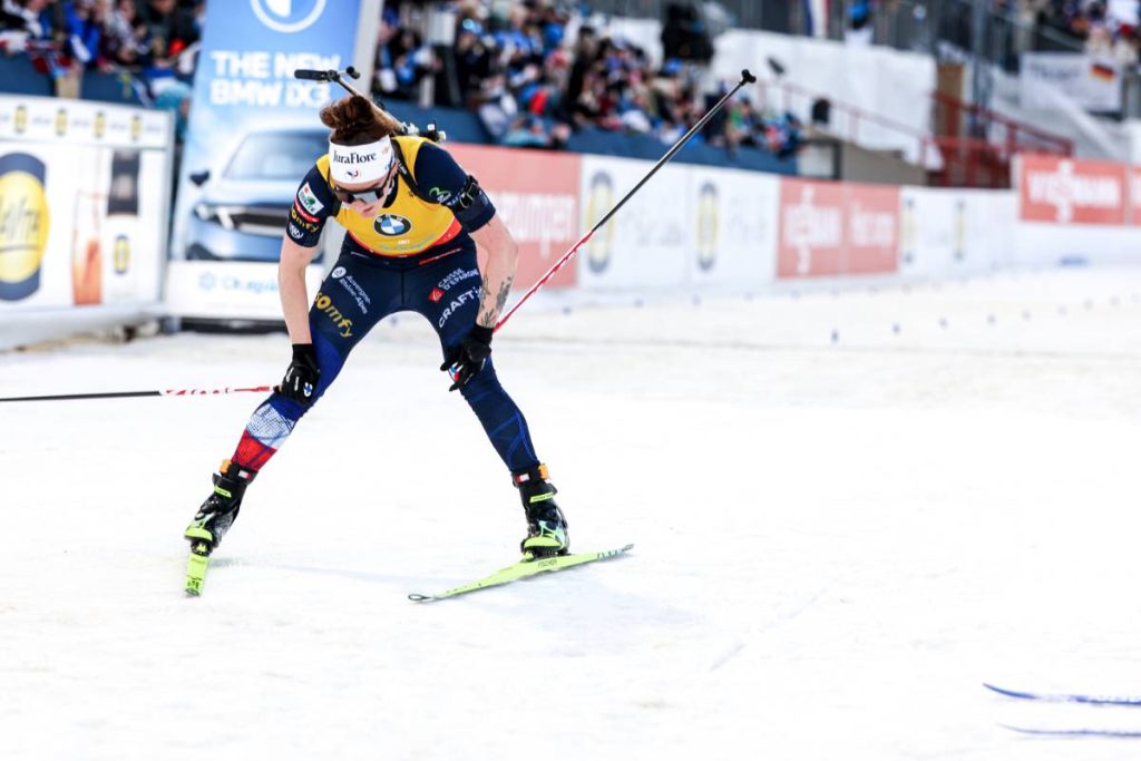 Après un sprint qui lui a permis de remettre les pendules à l’heure, Lou Jeanmonnot s’avançait pour un gros résultat aujourd’hui. Appliquée derrière la carabine, la Jurassienne faisait une course solide avec le 15/15 au tir. Quelques secondes derrière Julia Simon, elles s’avançaient toutes les deux pour titiller Lisa Vittozzi dans le dernier tour en cas de 5/5.