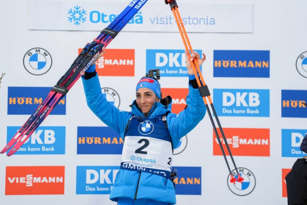 Et de 3 pour Lisa Vittozzi cet hiver ! La championne olympique du format s’offre une troisième poursuite cette saison à Otepää, après Hochfilzen et Antholz. Partie avec 3 secondes de retard sur Julia Simon, la Transalpine recollait rapidement dans les skis de la Française dès les premiers mètres. Arrivées ensemble au couché, les deux tireuses les plus rapides du circuit se neutralisaient. Une erreur de chaque côté, sans conséquence sur la tête de course. Bis repetita lors du deuxième couché, où cette fois-ci le sans-faute était de mise.