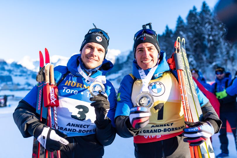 Malgré sa perte du dossard jaune, Quentin Fillon Maillet est content de terminer deuxième et de partager le podium avec Émilien Jacquelin…