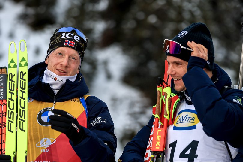 19e de l’individuel de Ruhpolding, Émilien Jacquelin a su trouver les mots pour motiver Johannes Boe à terminer la course, seulement 85e.