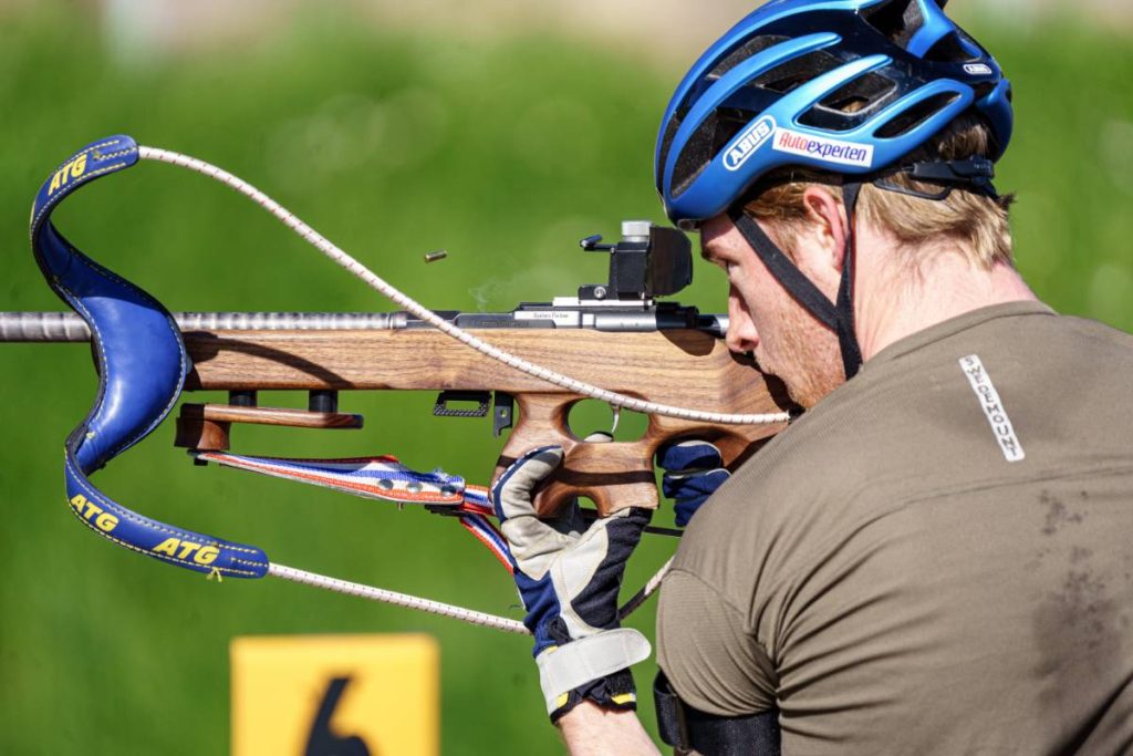 En pleine préparation, Sebastian Samuelsson travaille sur sa rapidité derrière la carabine en vue de la prochaine saison.