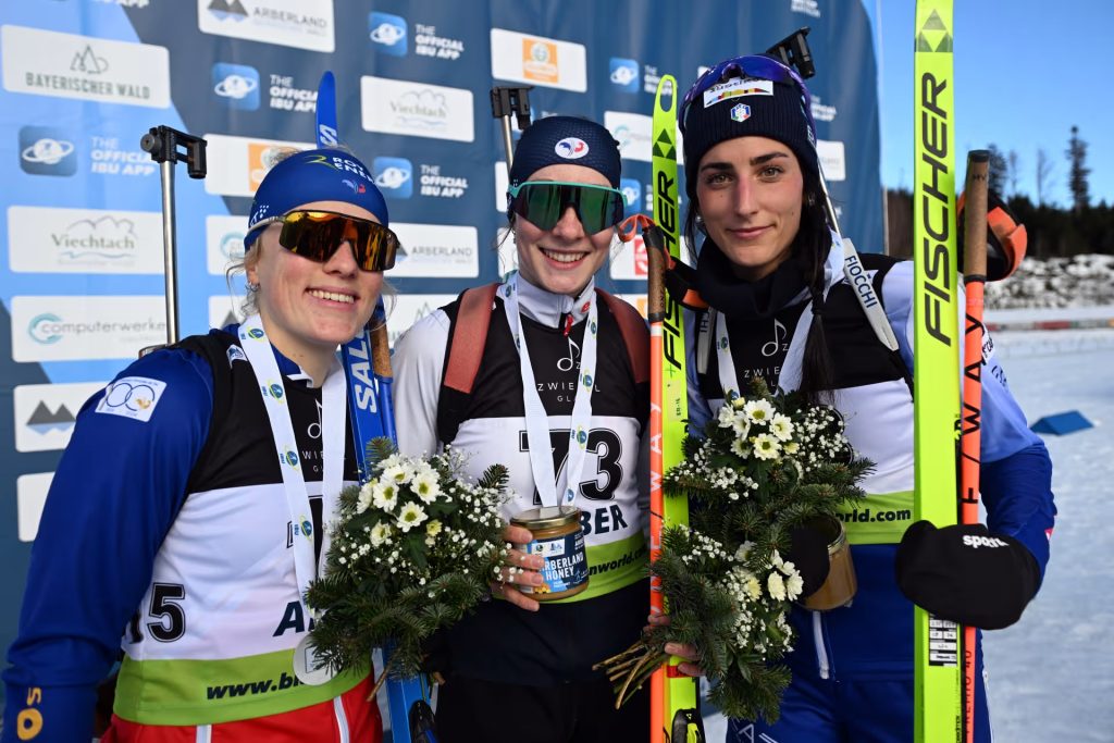 Les Vosges et La Bresse ont vécu une journée historique ce jeudi en biathlon. Quelques heures avant le premier succès en coupe du monde de Paula Botet, c’est une autre vosgienne qui a fait parler d’elle. Au départ de sa première course d’IBU Cup à Arber aujourd’hui, Amandine Mengin est également montée sur la première marche du podium.