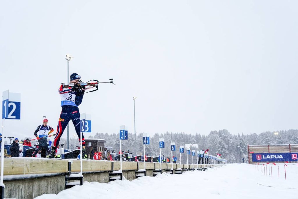 Un autre duel, à distance, s’est joué sur les pistes norvégiennes. Il a failli tourner à l’avantage de Simon Kaiser. L’Allemand, parti 7è à 47 secondes, a patiemment remonté dans le classement, en dépit d’une balle lâchée hors cible sur son premier tir. Les deux suivants furent impeccables et lui permirent de croire au podium. Car Sverre Dahlen Aspenes, qui s’était élancé en 3è position trente secondes devant lui, offrait une mince ouverture après une erreur sur chacun de ses tirs couché. Plus en verve sur son premier debout, le Norvégien conservait sa précieuse avance. Sous pression allemande, il commettait une erreur sur son ultime tir. Erreur dont n’a su profiter Kaiser, qui laissait lui aussi filer une balle et le podium, sur lequel Sverre Dahlen Aspenes parvient une nouvelle fois à monter.