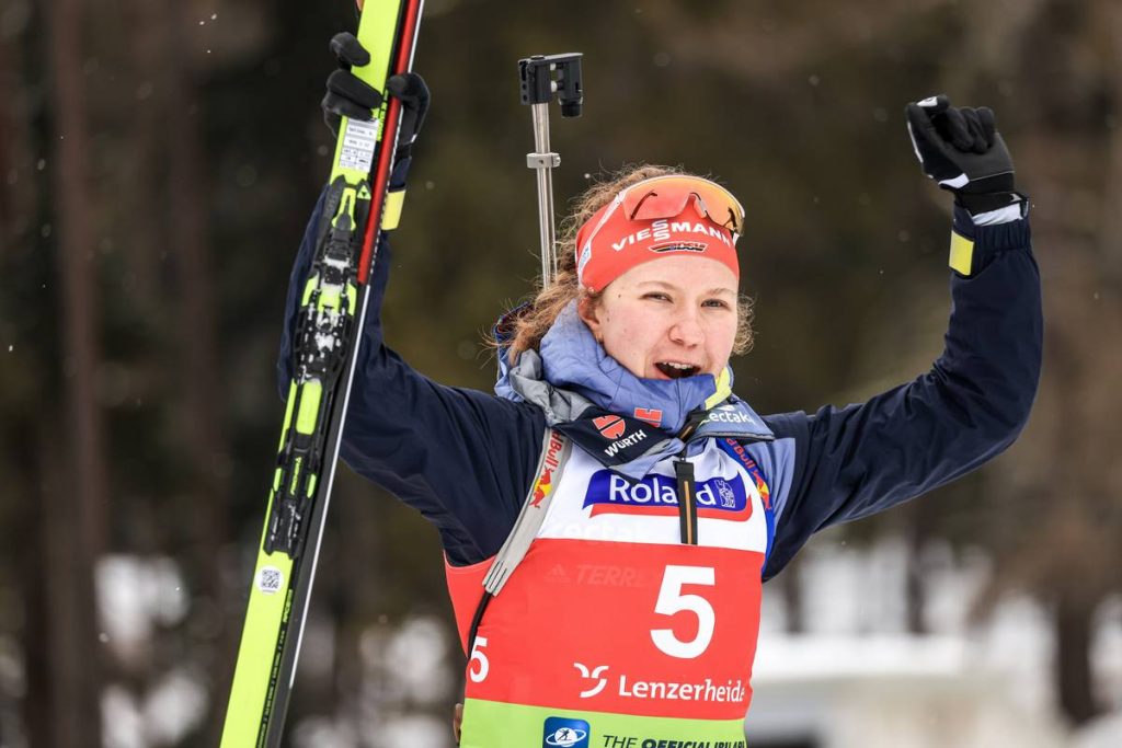 Quelques jours seulement après sa médaille de bronze sur l’individuel, Selina Grotian remet ça avec cette fois-ci le plus beau des métaux. En effet, la jeune Allemande, âgée de seulement 18 ans, s’adjuge une deuxième médaille en trois courses individuelles sur ces championnats d’Europe. S’élançant avec le dossard 5, à dix-huit secondes de la gagne, la biathlète d’Outre-Rhin, solide avec ce 19/20 derrière la carabine, a profité de la défaillance de Tilda Johansson et d’autres biathlètes devant elle sur le dernier tir pour réaliser le plein et s’envoler vers la victoire. Elle s’octroie ainsi le premier titre européen de sa jeune carrière.