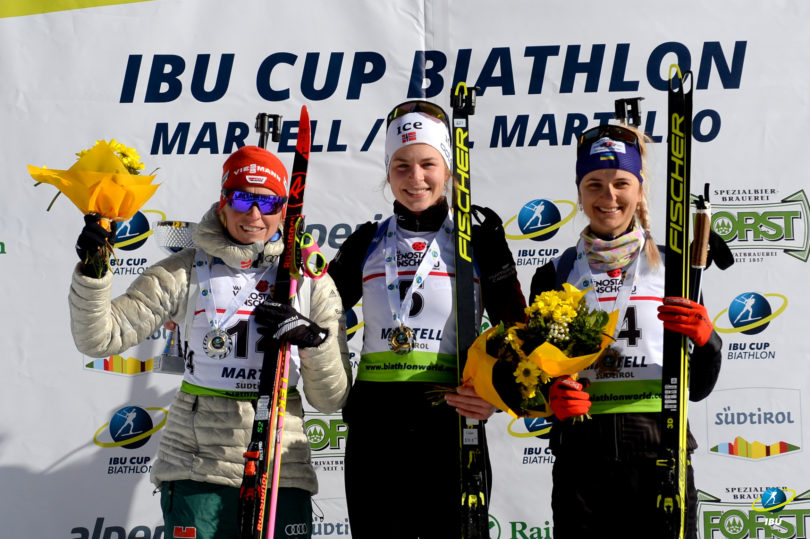 Grande première pour la jeune norvégienne de 22 ans. La scandinave n’était jamais montée sur un podium individuel, mais c’est aujourd’hui chose faite avec cette victoire. Pénalisée à deux reprises sur ses deuxième et troisième passages au tir, Ida Lien profite des erreurs des concurrentes pour ressortir du dernier debout en compagnie de Yuliia Zhuravok (19/20) et Franziska Hildebrand (19/20). Plus rapide que ses adversaires, la norvégienne les lâche rapidement et termine la course seule.