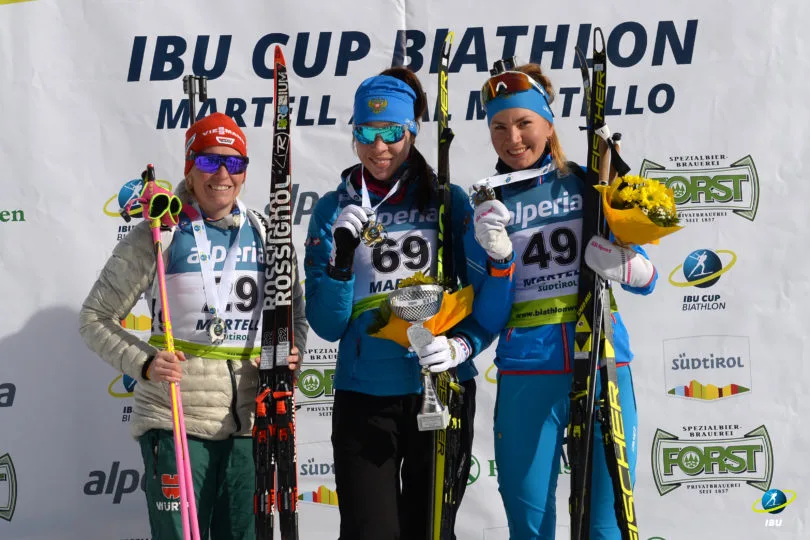 Rétrogradée en IBU Cup après des performances décevantes en coupe du Monde, Franziska Hildebrand va pouvoir retrouver le sourire avec sa seconde position. Deuxième représentante russe du podium, Victoria Slivko monte pour la troisième fois de la saison sur le podium. Belles performances pour les représentantes russes et allemandes. Les six biathlètes présentent à la cérémonie des fleurs sont toutes soit russes (4) soit allemandes (2).