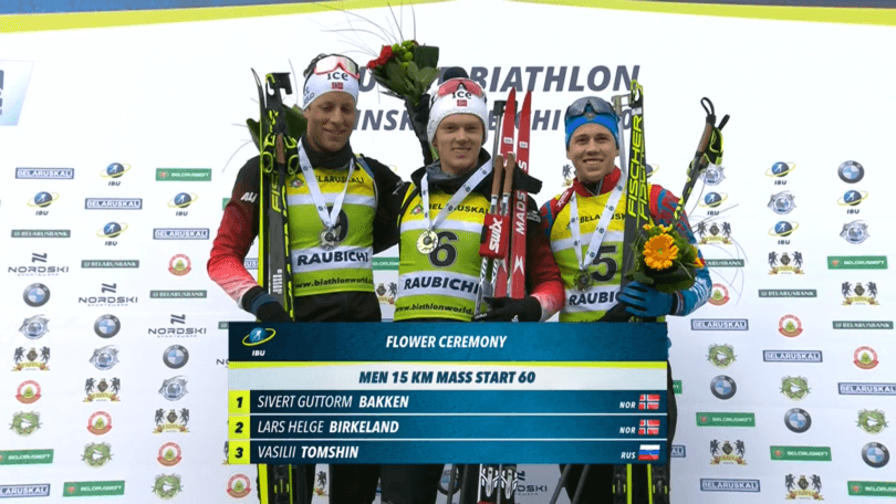 Dernière course de la saison d’IBU Cup, cette mass-start était très importante pour le classement général. Comme sur les deux sprints de la semaine c’est le Norvégien Sivert Guttorm Bakken qui remporte la course. Et avec la manière. Pénalisé à une seule reprise sur son dernier passage au tir, le scandinave termine la saison en beauté avec son triplé en trois jours. Il termine la course avec une avance confortable de vingt secondes sur son expérimenté compatriote Lars Helge Birkeland (18/20). Vasilii Tomshin complète le podium avec lui aussi un dix-huit sur vingt derrière la carabine.