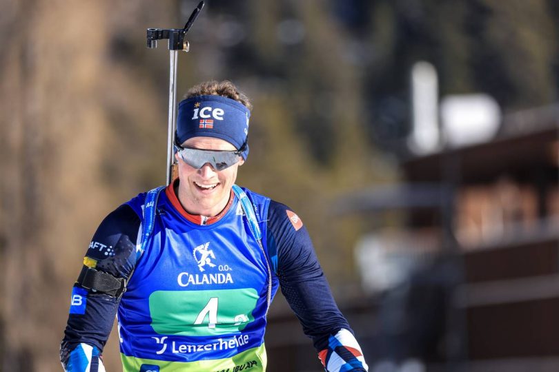 Avec quatre cibles non blanchies, mais le troisième temps de ski, Oscar Lombardot réalise le meilleur résultat français. Le Jurassien termine 23e à près d’une minute et demie de la gagne et prend un petit avantage dans la course au sixième ticket des Mondiaux.