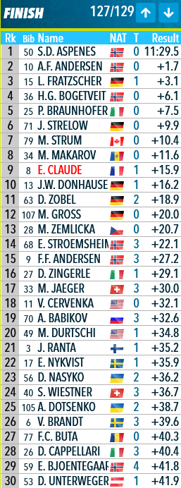 Sverre Dalen Aspenes vainqueur des qualifications, Émilien Claude a obtenu sa place en finale du super sprint ce matin, à l’inverse des quatre autres français engagés.
