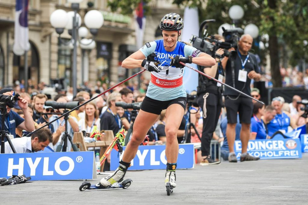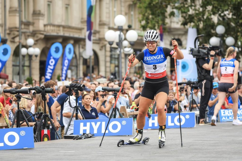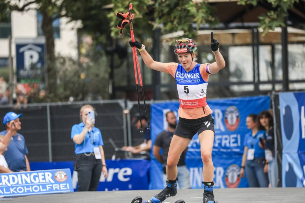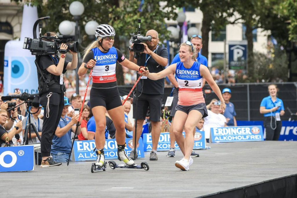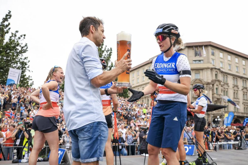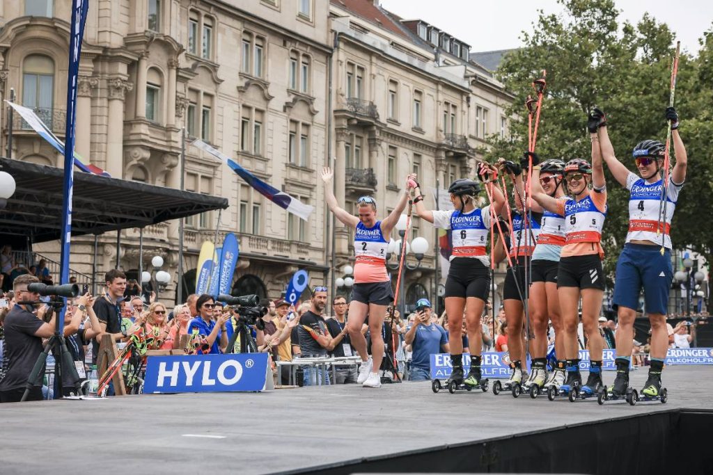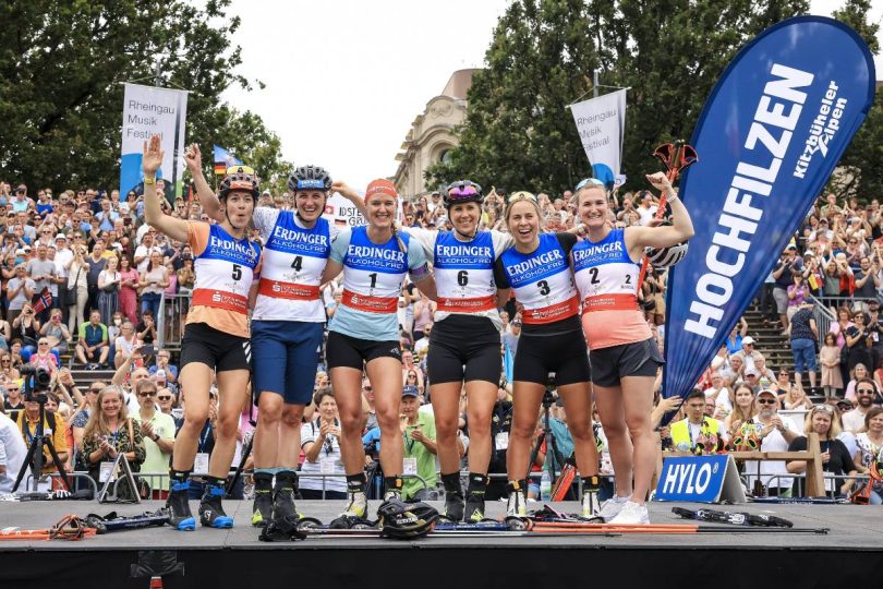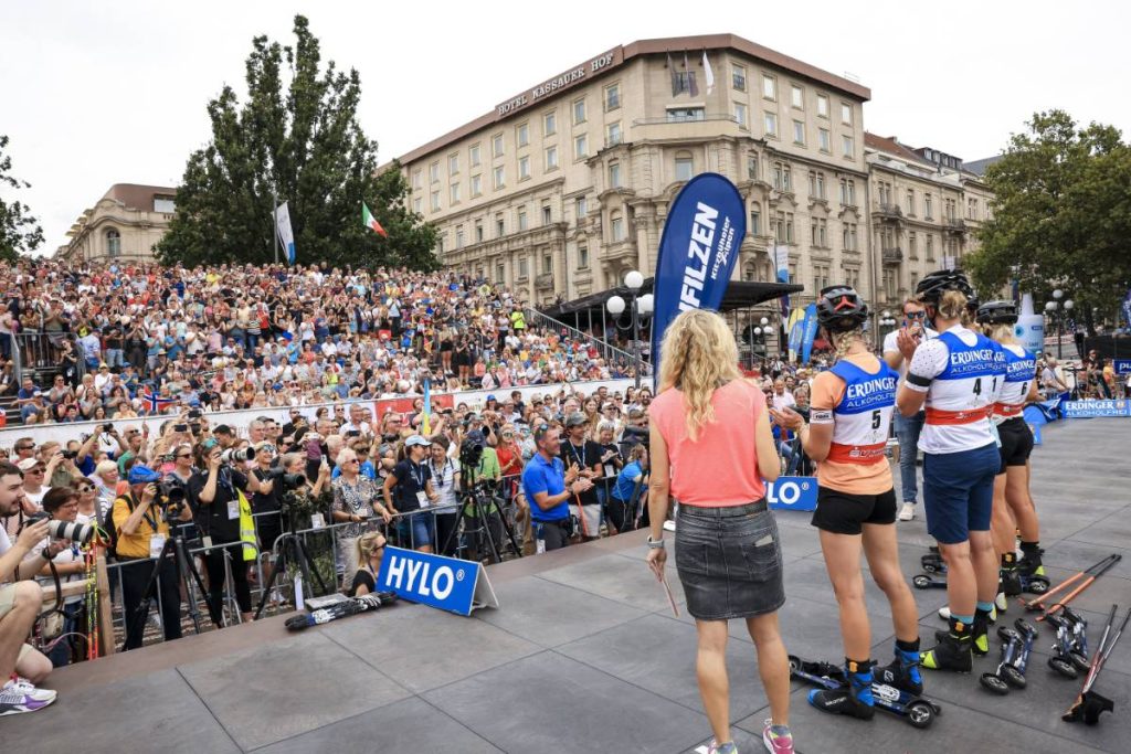 Marte Olsbu Roeiseland, Tiril Eckhoff, Denise Herrmann-Wick, Karolin Horchler, Maren Hammerschmidt et Vanessa Hinz ont profité d’un dernier bain de foule à l’occasion du City Biathlon de Wiesbaden.