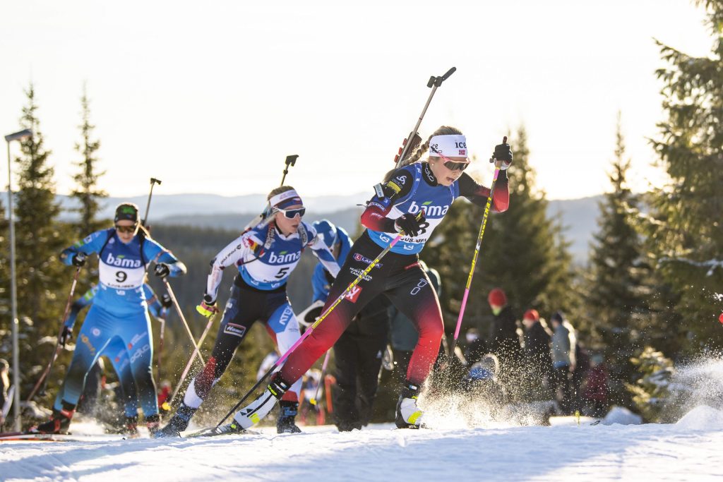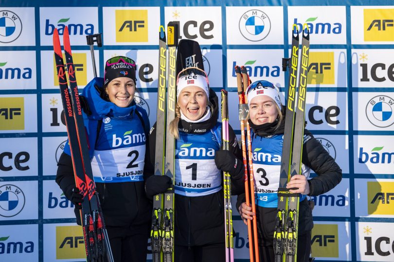 À quelques jours de s’envoler pour Ostersund, les athlètes de Fred Jean et Jean Paul Giachino sont déjà dans le coup. Certes, beaucoup de nations phares manquent à l’appel ce week-end, mais les Norvégiennes sont à elles seules un très bon indicateur pour jauger la forme des Bleues. Et les tricolores semblent déjà au top, à commencer par Chloé Chevalier. Quatrième hier, l’Iséroise confirme ce dimanche avoir passé un cap sur les skis. Auteure d’un très bon 19/20 sur le pas de tir, elle prend une magnifique deuxième place à 19.4 secondes d’Ingrid Tandrevold. Une deuxième place qu’elle a assurée dans la dernière boucle en résistant au retour de la Norvégienne Karoline Erdal, troisième avec un sans-faute comme sa compatriote.