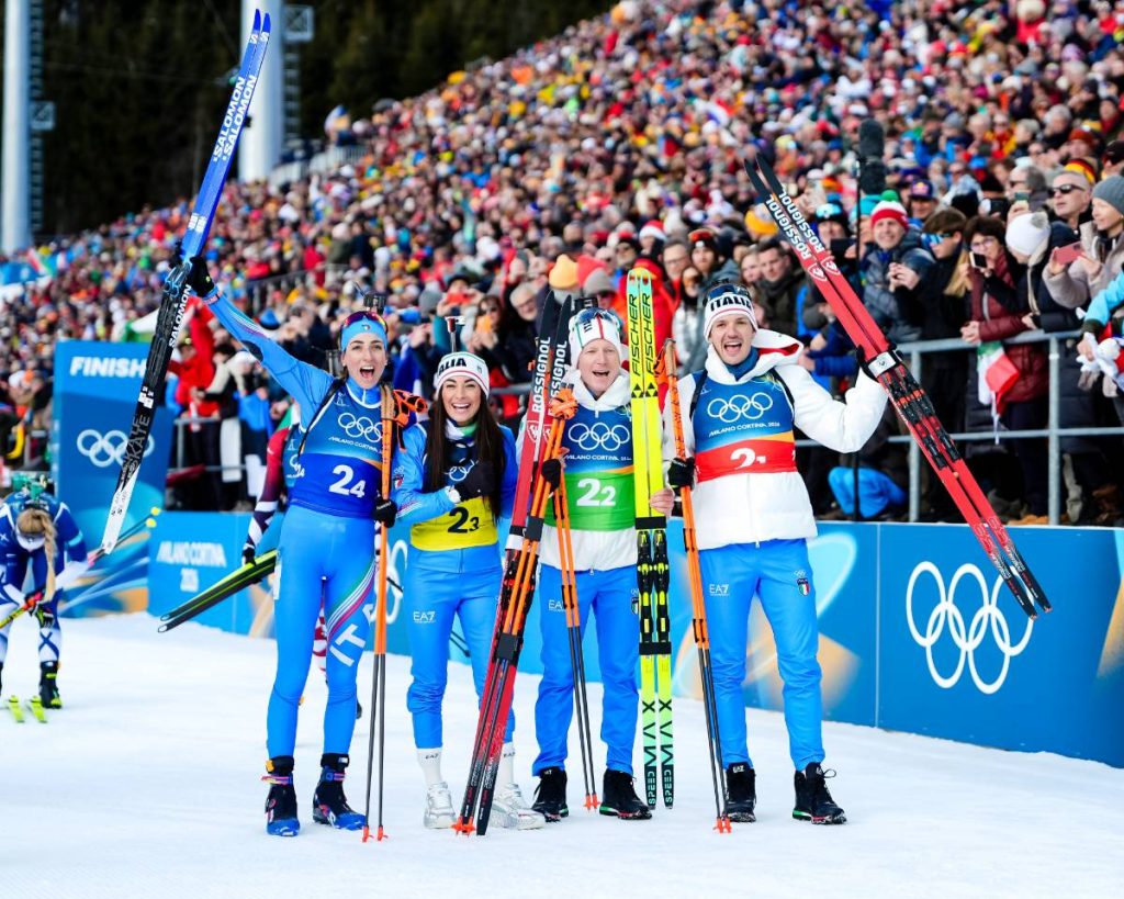 Vainqueurs du dernier relais mixte de coupe du monde, les Italiens n’ont pas cédé à la pression des Jeux à domicile. Attendus, ils décrochent l’argent pour la première fois sur le format après une médaille de bronze en 2014 et en 2018.